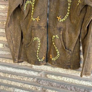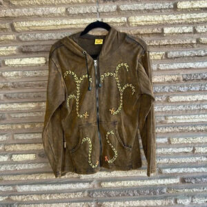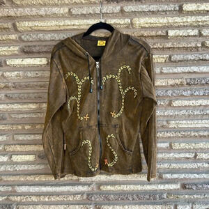 Brown embroidered hippie boho full zip hoodie sweatshirt