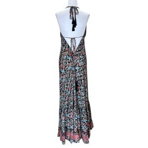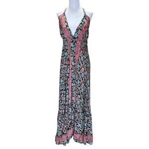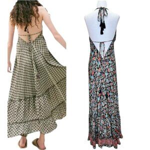 Karma Highway, “Tiered Magic” Maxi Dress Boho Halter Adjustable, Black, One Size