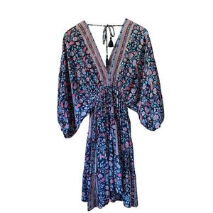 Karma Highway Floral Boho Mini Dress Black Multi OS