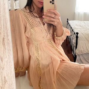 Karma Lace Flowy Button Down Puff Sleeve Boho Peasant Hipster Hippie Chic Dress