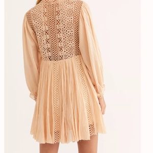Femme and flowy mini dress from our FP One collection featuring exaggerated sleeves and lace inserting for added dimension.