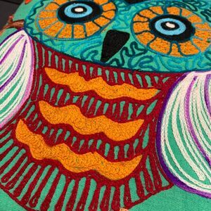 Karma Living Owl Fringe Throw Pillow 16x16 Green Background