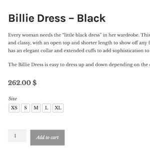 Every woman needs the "little black dress" in her wardrobe. This version is both sexy and classy, with an open top and shorter length to show off any figure. The Billie Dress has an elegant collar and extended cuffs to add sophistication to your overall look.