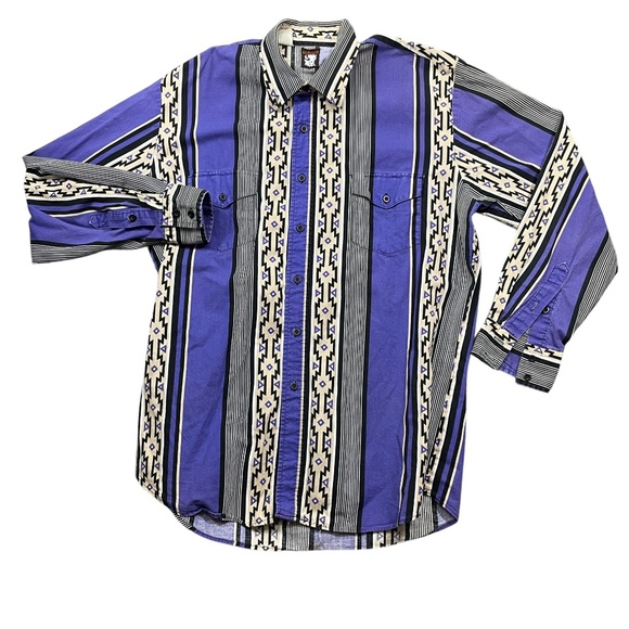Karman Large Long Sleeve Aztec Purple Black Men's Button Up Button Pockets