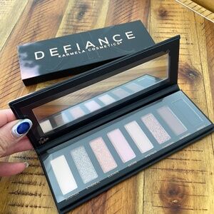 Karmela Cosmetics Defiance Nude Eyeshadow Palette features a combination of creamy shimmers and mattes in 8 universally flattering, high-pigment shades, with an extraordinary payoff and no chalkiness. Naturally formulated shades were created to last all day on ALL skin types (even sensitive skin) and is considered a multi-use palette.