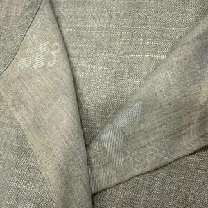 Can be worn as a jacket or top. Has lightly padded shoulders and cuff sleeves. It’s solid beige with a small floral white print that peek out of the collar and sleeve cuffs. It’s marked a small but it’s very oversized. See photos for measurements.