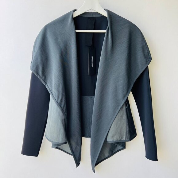 ❤️ KarolinazMarlak New York Reversible Drape collar jacket,Sage Gray/black , Siz