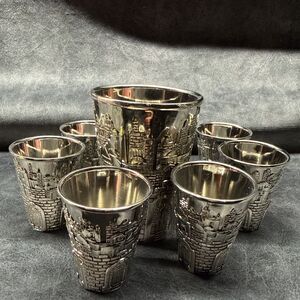 Karshi Jerusalem Motif Kiddush Fountain Cup & 6 Small Cups