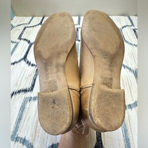 Stylish tan leather ankle boots with perforated detailing. Perfect for any occasion.
