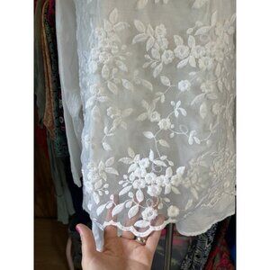 Karta Cottagecore Prairie Tunic Top Boho Embroidered Floral Long Sleeve White L?