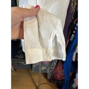 This top is in very good pre-owned condition. NO holes. There is a small spot on the left sleeve. No fabric or size tag. The fabric is likely cotton and the size is likely a large. Please see measurements for sizing. Please see pics for more condition details.
