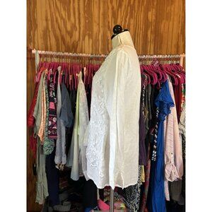 This listing is for Karta Cottagecore Prairie Tunic Top Boho Embroidered Floral Long Sleeve White L?