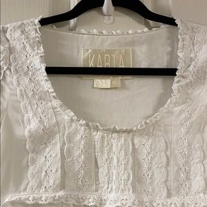 Karta 100% cotton mini dress with wonderful lace detail. Size Xsmall. Chest measures 16 1/2. Length from back of neck to hemline 29 1/2”. Fabric is NOT stretchy. Fully lined. Could also be worn as a tunic. Excellent condition.