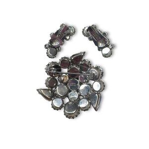 Karu Arke Signed Blue Crystal Brooch Earrings Set Selenium Glow