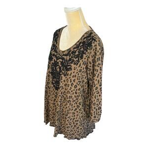 Karyn Seo Leopard Animal Print Tunic Top Size Medium Embroidery