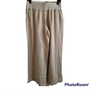 Karyn Seo Brysa Wide Leg Linen Pants Medium Oatmeal. Elastic Waistband. No pockets.
