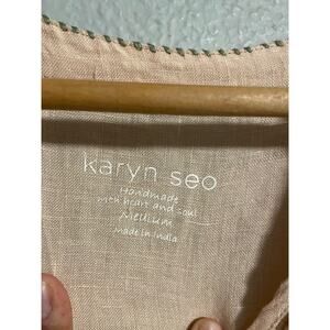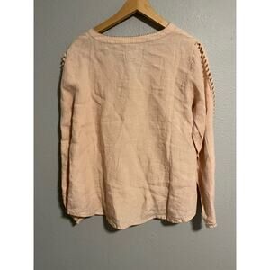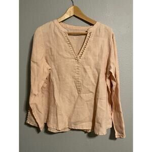 Karyn Seo Womens Tunic Medium Peach Linen 3/4 Sleeve Peasant Lagem Lagenlook