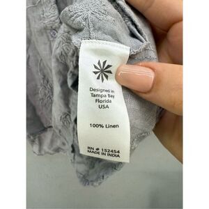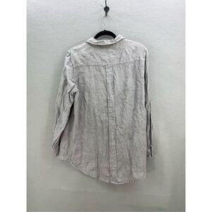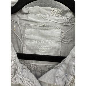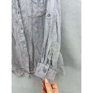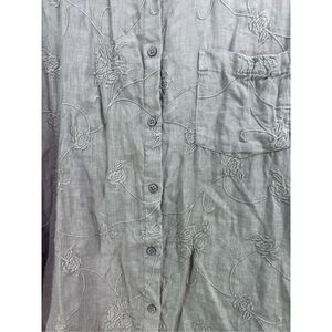 Karyn Seo Womens Gray Linen Embroidered Roll Tab Sleeve Button Up Shirt Sz Large