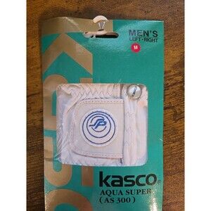 The Kasco Men's Golf Glove in White Aqua Super AS 300 is designed for left-handed golfers in a size medium. Made of leather, this glove offers a comfortable and secure fit for optimal performance on the golf course. With a stylish design and durable material, this glove is crafted in Thailand to ensure quality and functionality for every golfing enthusiast.