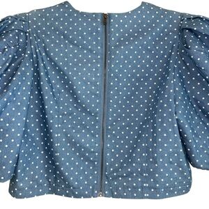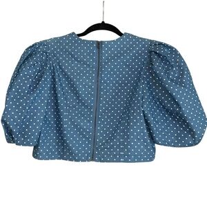 Kashieca By Rhett Eala Puff Sleeve Boxy Blue Polka Dot Crop Top Women’s S Zipper