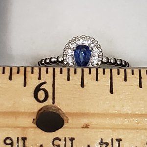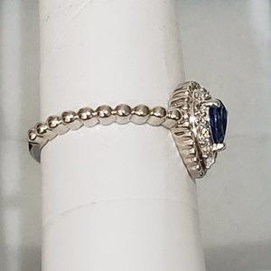 Kashmir Kyanite & White Zircon halo ring in Plat/over 925 Sterling .75cts sz 8