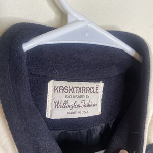 Details: vintage 60s-70s, "cashmere feel", two buttons at front, cream/black, made in usa, built-in shoulder pads