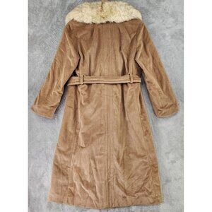 Gently used, vintage, small discolored spot midway on right of front, some loose stitching between collar & fur trim, small tear in lining at right armpit area, in good condition.