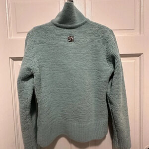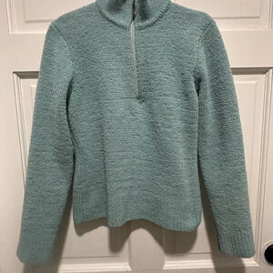 Kashwere Womens Size S Light Teal Chenilla Soft Plush Weave Quarter Zip Sweater