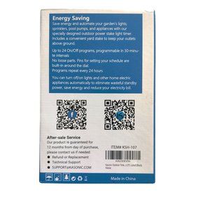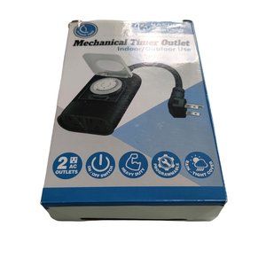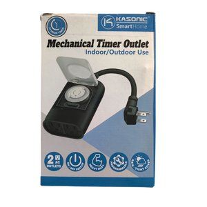 Kasonic Smart Home Mechanical Timer Outlet; 120V, 60Hz; 15A 1875W, 1250W tungsten max load; 2 AC outlets; indoor/outdoor use; up to 24 on/off programs, programmable in 30-minute intervals.