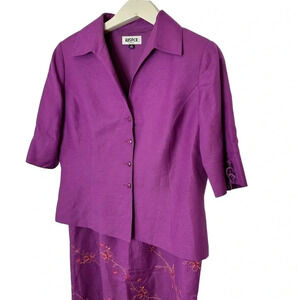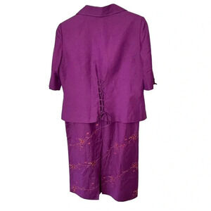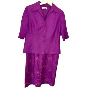 Kasper 12 purple linen blend embroidered skirt & blazer suit
