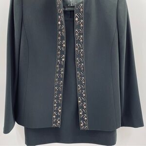 Kasper 2 Piece Black Beaded Embellished Lined Jacket Zip Skirt Suit Set Office