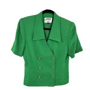 Gorgeous Green 2 piece skirt and short sleeve jacket set by Kasper. Both jacket and skirt are fully lined. Jacket is short-sleeved and adorned with gold, nautical style buttons on front and sleeves. Size 8