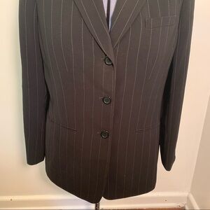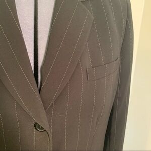 Great condition, minor wear. Kasper. 3 button blazer. Black with white stripes. Faux pockets. Lined. Size 16. 99% polyester, 1% other fibers. Pit to pit laying flat 22” Shoulder to hem 28.5” Sleeve (pit to hem) 16.5”. All measurements are approximate and taken lying flat. Smoke free home. No trades, offers welcome.