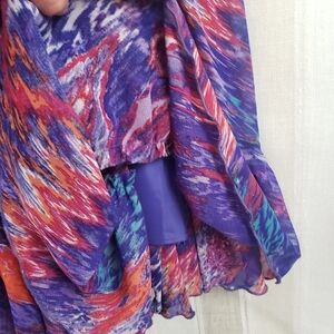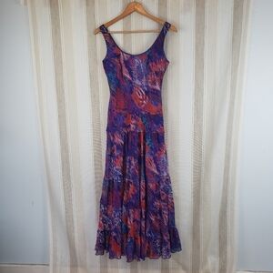 Kasper 90s Tiered Sleeveless Max Dress Watercolor Peacock Purple Size 4 Chiffon