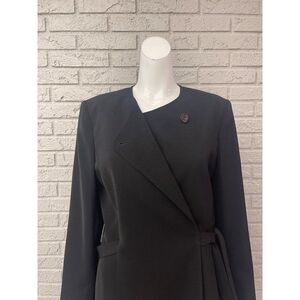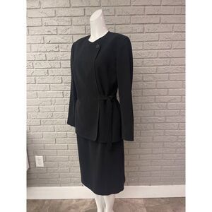 Kasper ASL Black Faux Wrap Blazer Skirt Set Size 10