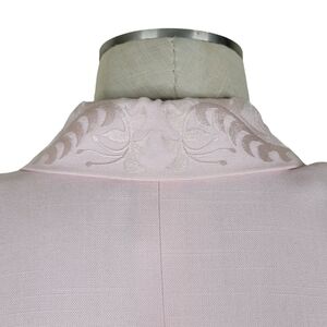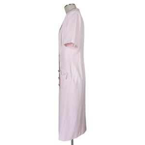 Kasper ASL Midi Dress Size 10 Pink Offset Button Front Embroidered Short Sleeve