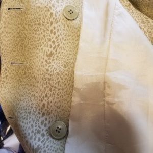Fully lined, double-breasted jacket, back slit on the skirt, light padding on shoulders of the jacket, inside buttons.