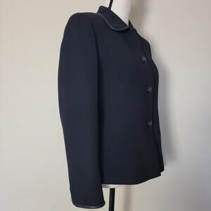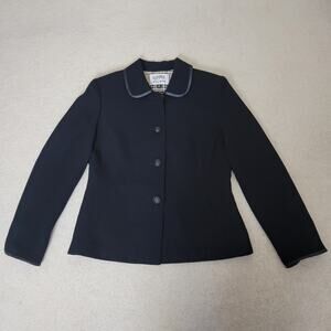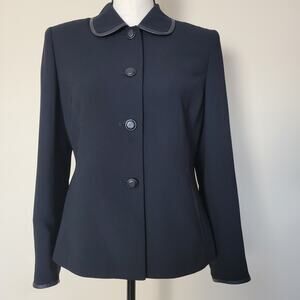 Kasper ASL Petite 8 Jacket Blazer Single Breasted Faux Leather Trim Lined