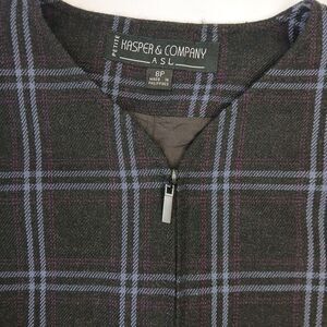 Kasper ASL Petite Black Plaid Wool Shiraz Blazer Jacket Size 8P Zip Up Lined NWT