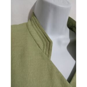 Beautiful spring-themed suit from Kasper ASL petite in size 8P. Both pieces are made from 100% polyester including the lining. The jacket features a very interesting collar style with some stitching detail. It has a four button closure and the long sleeves and in two button closures. The jacket is a lovely spring green in color. The chest measurement is about 38-40 in. From the shoulder to the hem measures about 23 in. There is some non-removable padding in the shoulders. The skirt is a bright yellow in color pencil style. The waist measurement is about 28-30 in. It measures about 20 in in length with a tiny one and a half inch slit at the center front.
