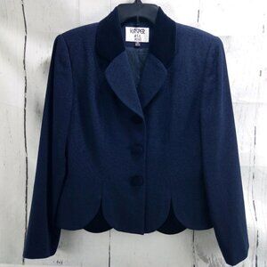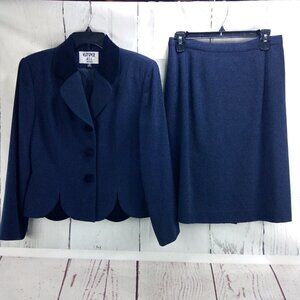 Kasper ASL Petite Womens Size 10P Wool 3 Button Blue 2pc Skirt Suit