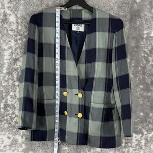 Kasper ASL Petites Sz 8P Checkered V Neck Blazer Jacket Long Sleeve Button Lined