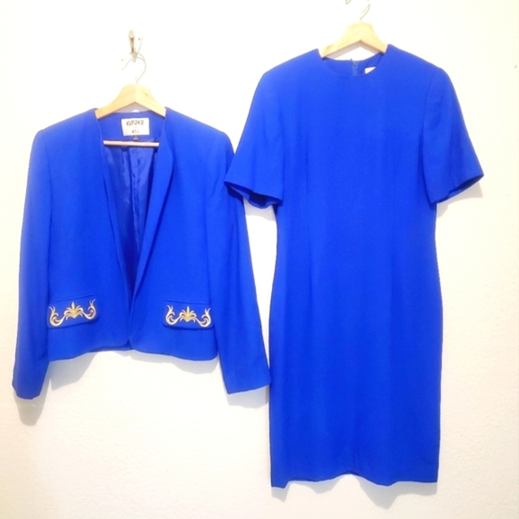Kasper A.S.L Royal Blue 2 Piece Sheath Dress & Matching Blazer Suit Jacket Set