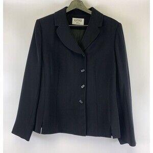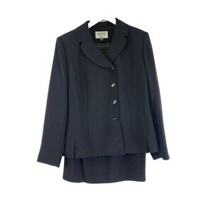 Kasper A.S.L. Skirt Suit Black Blazer Button Straight Knee Pencil Zip Womens 10