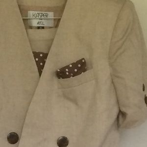 NWT 2 pc layered look beige/tan double-breasted short-sleeve skirt suit size 10, layered-look faux blouse, pocket handkerchief, From a non-smoking house, Contact me with any questions. Bundle and SAVE!