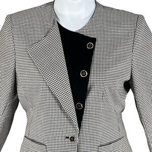 Kasper ASL Womens 8 Black White Houndstooth Blazer Skirt Set Power Suit Timeless
