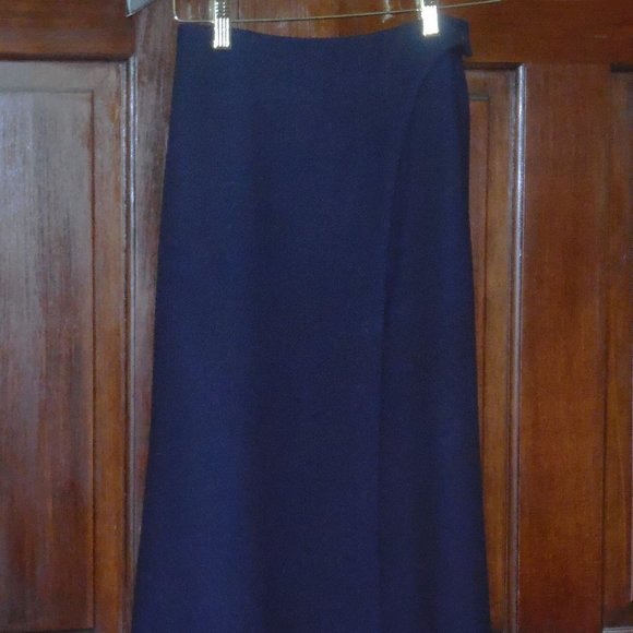Kasper ASL Wrap Maxi Skirt. Size 12. 100% wool. Navy blue color. Faux side wrap. Complete lined. Cut on bias for exceptional fit. Back zipper. 32" waist. 35" long. Excellent like new condition.