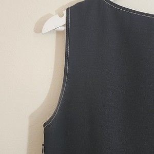 Fully lined dress that zips up on the side. Approximate measurements in photos. No stretch. Some deoderant on underarm area. Has some contrasting stitching as well. Some marks under the garment as shown in photos. This could use a dry cleaning (I will sometimes wash by hand). Vintage from around thr 60's to 80's. All lined. Can be dressed up with heels.
