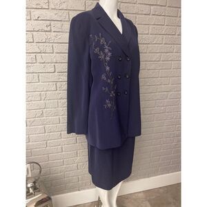 Kasper ASL Women Double Breasted Embroidered Skirt & Jacket 2 Pcs Suit Set Size