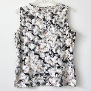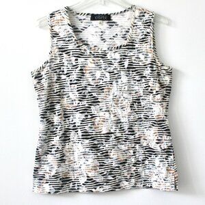 Kasper Black Beige Neutral Floral Striped Tank Top Blouse Medium